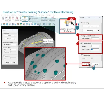 CAM-TOOL, a leading surface-based CAM system designed for high-precision 3D machining. Renowned for producing ultra-accurate toolpaths, CAM-TOOL excels in machining hardened steels with long length-to-diameter ratio tools, offering advanced 3-axis and 5-axis strategies tailored for mold and die applications. The upcoming Version 21 release introduces powerful enhancements, including improved AI-powered cutting condition computation that optimizes feeds and speeds based on the tool’s protruding length, ensuring superior performance even with complex tool geometries. A new automated command streamlines hole machining by generating bearing surface shapes on curved surfaces directly from the Hole Entity, eliminating manual modeling and boosting efficiency. Version 21 also enhances 5-axis roughing with optimization features like “Delete air-cut” and “Auto clearance,” automatically handling air-cut removal in undercut regions for faster, more efficient toolpaths. Additionally, the advanced machine simulation now includes interference checks using the Stock Model from prior processes, uniquely verifying movements from the tool change position to the initial tool position—a feature typically requiring external software but now seamlessly integrated into CAM-TOOL. Visit us at CMTS to experience how Version 21 delivers precision, efficiency, and innovation for your machining needs.
