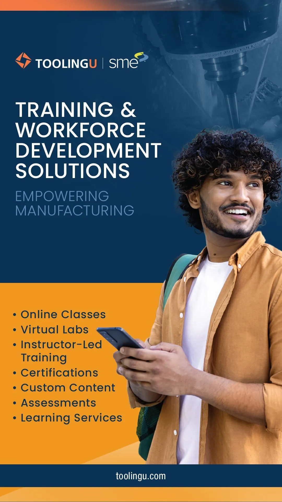 Tooling U-SME delivers versatile, competency-based learning and development solutions to the manufacturing community, working with thousands of companies, including more than half of all Fortune 500® manufacturers, as well as 900 educational institutions across the country. Tooling U-SME partners with customers to build high performers who help their companies drive quality, productivity, innovation, and employee satisfaction. A division of SME, an organization that connects people to manufacturing solutions, Tooling U-SME’s products and services include online classes, virtual labs, instructor-led training, consulting, custom content, assessments, and certifications.